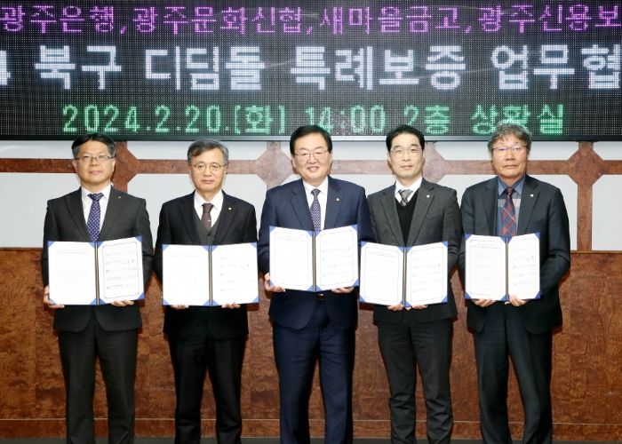 20일 북구에 따르면 이날 오후 2시 북구청 2층 상황실에서 ▲광주은행 ▲북구 지역 새마을금고(11개소) ▲광주문화신협 ▲광주신용보증재단 등 총 15개 기관 관계자가 참여한 가운데 ‘북구 소상공인 디딤돌 3無 특례보증 업무 협약’이 체결됐다.