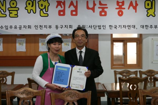 한편 이날 후원단체인 사단법인 한국기자연대는 특수임무유공자회 인천지부 정희철 지부장, 김성일 조직국장 남구지회 최상돈 지회장, 동구지회 이영준 지회장, 주부기자단 김진남 부회장, 김정효 감사의 아름다운 선행에 대해 참봉사상을 수여했다