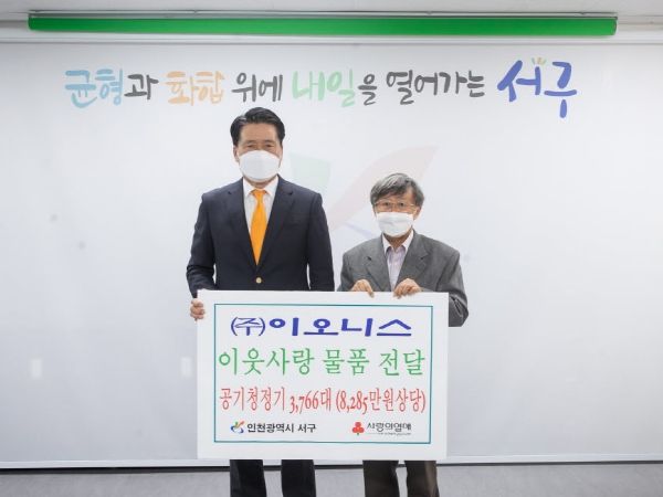 [한국기자연대] 인천 서구는 10일 ㈜이오니스가 8천2백만 원 상당 공기청정기 3,766대를 후원했다고 밝혔다.
