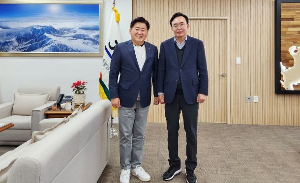 이어 제주특별자치도청을 방문한 윤 시장은 오영훈 도지사에게 신재생에너지 잉여 전력을 활용한 그린수소 생산·보관·이송과 관련해 한국에너지공과대학교와 연계한 양 도시 간 상생 협력을 제안했다.