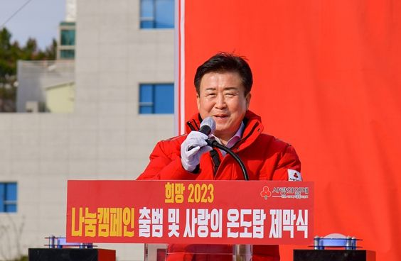 [한국기자연대] ‘희망2023 나눔캠페인’을 알리는 전남 동부권 사랑의 온도탑이 5일 오후 전남 여수시청 앞 1호 광장에서 제막식을 가졌다.