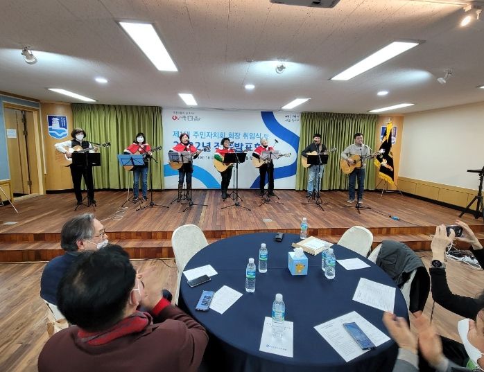 취임식이 끝나고 주민자치 프로그램 수강생들의 작품발표회가 이어졌다. 클래식기타반 무대를 시작으로 통기타 공연, 클래식 3중주 앙상블팀, MBN 보이스퀸 결선 진출자 가수 최세연의 무대 등 다양한 무대가 펼쳐졌다.