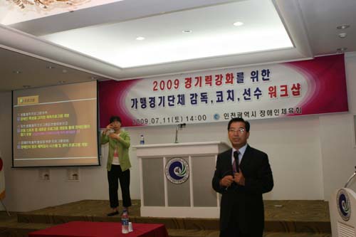 인천광역시 장애인체육회는 11일 오후 2시 인천 중구 신신컨벤션센터 3층에서 ‘2009년 전국장애인체전 경기력 강화를 위한 경기단체 감독. 코치. 및 선수 워크샵’을 가졌다