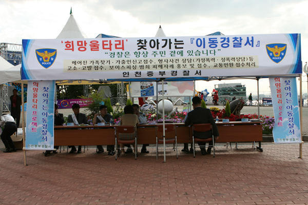 6일 오후 2시 이환섭 서장은 자유공원에 설치된 헤어진 가족, 가정폭력, 성폭력 등에 대한 민원처리 현장인 ‘이동경찰서’를 찾아 직원들에게 시민들의 민생치안에 직결된 민원접수에 대해 한 치에 소홀함이 없이 치안서비스에 만전을 기할 것을 당부하며, 이번 봉사에 참여한 (사)한국기자연대 주부기단(상임대표 최화성)과 민생치안에 대한 격의 없는 대화를 가져 눈길을 끌었다