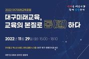 [한국기자연대] 대구시교육청은 11월 29일 오후 3시부터 인터불고 엑스코 호텔에서 ‘2022 대구미래교육포럼’을 개최했다. 대구미래교육포럼은 2018년부터 매년 대구교육의 방향 설정을 위해 교육가족과 일반시민이 다함께 대구교육에 대해 고민하고 교육에 대한 의견을 공유하는 자리로 운영해 왔다. 지난 2년간 코로나19로 인해 온라인으로 운영했던 대구미래교육포럼을 올해는 대면 운영과 함께 실시간 온라인 방송 송출을 통해 온·오프라인을 동시 운영함으로써 보다 많은 교육가족이 참여할 수 있을 것으로 예상된다. 2022 대구미래교육포럼은 ‘대구미래교육, 교육의 본질로 통(通)하다!’ 라는 주제로 대구교육의 방향을 되짚어보고 참여자들의 사전질문 및 실시간 질의 및 토론을 통해 본질에 충실한 대구교육의 청사진을 교육가족과 함께 그려가고자 한다. 이번 포럼의 1부에서는 ‘AI 메타버스 시대의 인재상과 미래교육’라는 주제의 기조강연(강연자 : KAIST 이광형 총장)을 시작으로 학습자 주도성을 이끌어내는 수업에 대한 교사들의 주제강연이 이어진다. 이어지는 2부에서는 세션을 구분해 세션1에서는 ‘미래교육, 인성으로 통하다’라는 주제강연(강연자 : 광주교대
