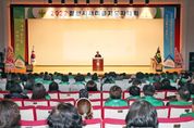 [한국기자연대] 창원특례시 새마을회는 15일 오후 2시 늘푸른전당 공연장에서 ‘2022년 창원시 새마을지도자대회’를 개최했다. 이날 대회는 ‘다시 새마을운동, 세계와 함께’라는 주제로 열렸으며, 홍남표 창원특례시장, 김이근 창원시의회 의장, 안화영 새마을운동경남지부회장, 새마을지도자 등 400여명이 참석했다. 본행사는 창원시 새마을운동 활동영상 상영, 우수지도자 포상 수여, 대회사, 격려사, 새마을노래 제창 순으로 진행됐다. 새마을지도자들은 2023년 지역사회에서 더 사랑받는 새마을운동에 앞장설 것을 다짐했다. 이날 새마을운동에 기여한 새마을지도자 중 행정안전부장관 표창 2명, 경상남도지사 표창 8명, 창원시장 표창 58명, 창원시의회의장 표창 8명, 새마을중앙회장 표창 4명, 경상남도새마을회장 표창 2명, 창원시새마을회장 표창 41명 등 총 123명이 수상의 영예를 안았다. 장기영 회장은 “올 한 해 헌신적으로 봉사활동에 매진한 새마을지도자들의 노력을 격려하고, 내년에도 긍지와 자부심을 바탕으로 봉사활동에 최선을 다하겠다”고 말했다. 홍남표 창원특례시장은 “올 한해 지역발전을 위해 헌신한 새마을지도자들에게 감사함을 전하며, 내년에도 지역