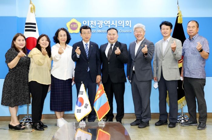 [한국기자연대] 몽골 옵스도의회 의장 일행(밧볼트 츠위인 의장, 푸레브수란 손두이 위원 등)이 25일 인천광역시의회(의장 허식)를 방문했다. 몽골 서쪽과 러시아 접경지역에 위치한 옵스도는 인구 약 8만3000여 명으로, 중심도시 울란곰은 17세기 후반에 기초를 세운 몽골의 고대도시 중의 하나로 알려져 있다.