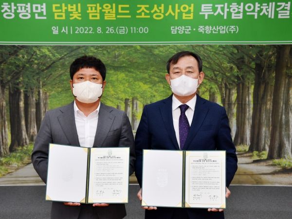 담양군은 죽향산업(주)와 문화관광 활성화를 통한 관광객 유치를 위해 복합 관광휴양단지 ‘창평면 담빛 팜월드’ 조성사업 합의각서(MOA)을 체결했다고 밝혔다.