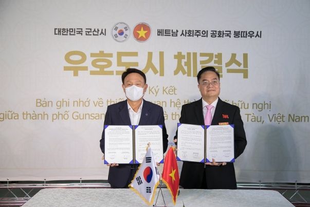 지난 26일 군산시청에서 열린 우호도시 협약 체결식에는 강임준 시장, 김영일 시의장 등 시 대표단과, 황부따잉(Hoang Vu Thanh) 붕따우시장을 비롯한 마이 응옥 투언(Mai Ngoc Thuan) 붕따우성 인민의회 부의장 등 내외빈 100여명이 참석했다.
