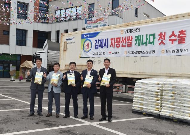 [한국기자연대] 김제농협은 NH농협무역을 통해 김제시 공동브랜드인‘지평선쌀’20톤(10kg 2,000포)을 캐나다에 첫 수출하기 위한 상차식을 정성주 김제시장, 이정용 김제농협 조합장, 김병철 농업기술센터소장 등 관계자가 참석한 가운데 30일 가졌다.