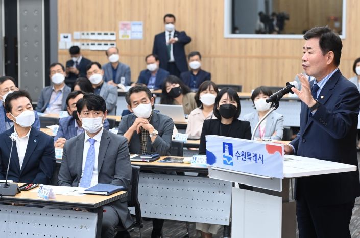 이재준 시장은 “김진표 의장의 아이디어가 실현되면 수원시와 화성시가 상생 발전할 수 있을 것이다”며 “수원시와 화성시가 함께 발전할 수 있도록 노력하겠다”고 말했다.