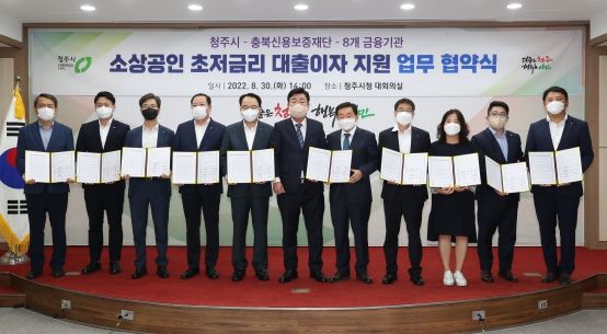 [한국기자연대] 청주시는 30일 시청 임시청사 대회의실에서 충북신용보증재단 및 8개 금융기관(농협, 국민, 하나, 신한, 우리, 기업, 신협, 새마을금고)과 함께 ‘청주형 소상공인 육성자금’지원 협약식을 가졌다고 밝혔다.