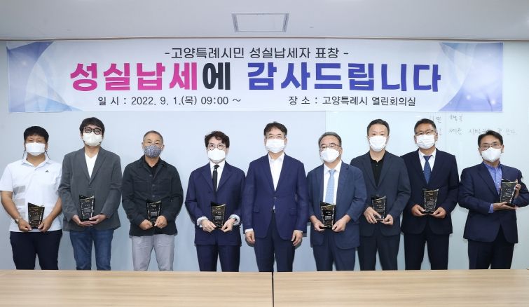 [한국기자연대] 고양특례시는 지난 1일 지방세를 성실히 납부해 시 재정확충에 기여한 성실납세 유공자를 선정, 표창패를 수여했다고 밝혔다.
