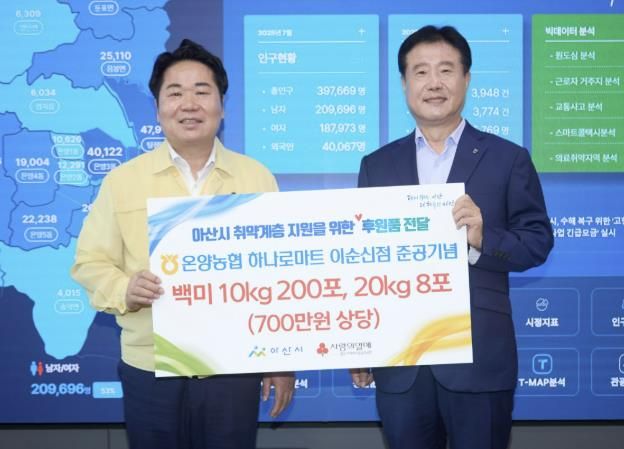 오세현 아산시장은 “온양농협 하나로마트 신축을 다시 한 번 축하드리며, 기탁해 주신 성품은 도움이 필요한 이웃들에게 소중히 전달하겠다”며 감사의 뜻을 전했다.