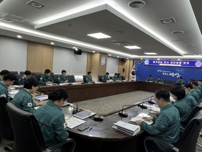 [한국기자연대] 예산군은 특별재난지역 선포로 인해 2025년 을지연습을 축소 실시하는 가운데 지난 18일 군수 주재 전시현안과제 토의를 진행했다고 밝혔다.