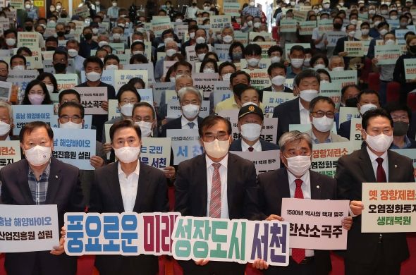 아울러 △다목적 보령신항 조기완공 △충청산업문화철도 건설 △보령-대전-보은 고속도로 건설 △보령머드 활용 메디바이오 소재화 실증기반 구축 등을 약속했다.