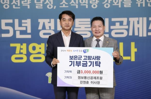 [한국기자연대] 강정훈 정보통신공제조합 이사장은 지난 1일 속리산포레스트 연수원동 비전홀에서 열린 ‘2025 정보통신공제조합 경영발전 세미나’에서 보은군에 고향사랑기부금 300만원을 기탁했다.