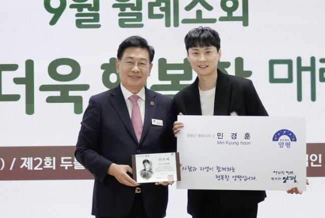 [한국기자연대] 양평군은 3일 군청 대회의실에서 열린 9월 월례조회에서 가수 민경훈을 양평군 홍보대사로 위촉했다.
