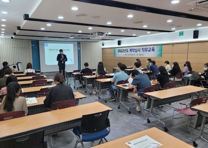 이번 직무교육은 경희대학교 산업관계 연구소 고형진 강사(원가분석연구실 팀장/책임연구원)의 공사원가계산 산정 등을 통한 예정가격 작성 방법, 계약심사 제도 및 기준 해석 등에 대한 강의와 질의응답 순으로 진행됐다.