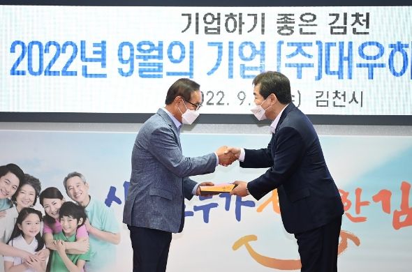 [한국기자연대] 김천시는 9월 이달의 기업으로 ㈜대우하이원샤시(대표 최경호)를 선정하고 7일 김천시청에서 선정패 전달식을 가졌다.