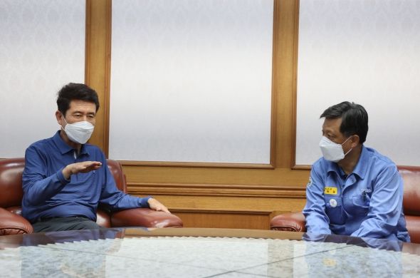 [한국기자연대] 이강덕 포항시장은 15일 포스코 본사를 방문해 김학동 포스코 부회장을 만나 이번 태풍 ‘힌남노’로 인한 피해 복구 및 조기 정상화를 위한 공동대응책을 논의했다.