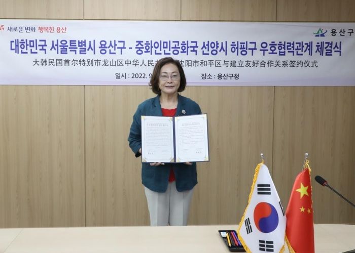 [한국기자연대] 서울 용산구와 중국 선양시 허핑구가 15일 행정·경제·문화 분야의 다양한 협력 사업을 위한 우호교류 협약을 맺었다.