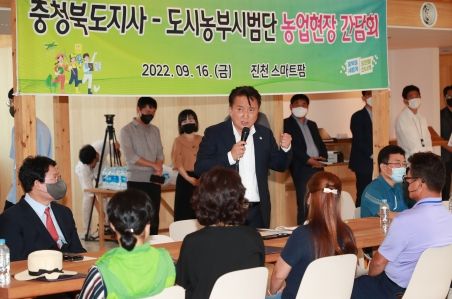 김영환 충북지사는 9월 16일 도시농부 소통간담회를 개최해 민간사회단체 소속으로 구성된 50명의 도시농부 시범단에게 도시농부증을 수여하고, 도시농부의 추진배경과 목표, 도시농부의 역할 등을 공유하는 대화의 시간을 가졌다.