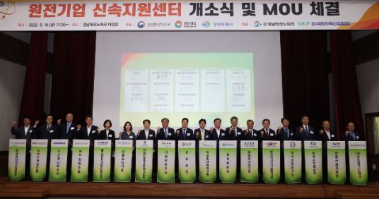 경남도는 16일 경남테크노파크에서 원전산업을 전략적으로 육성하기 위한 원전기업 신속지원 협의체 업무협약을 체결하고 신속지원센터 개소식을 개최했다.