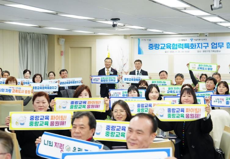 [한국기자연대] 중랑구는 11월 26일 구청 4층 기획상황실에서 서울특별시교육청과 ‘중랑교육협력특화지구’업무협약을 체결했다. 이번 협약은 2019년 혁신교육지구, 2023년 미래교육지구 추진에 이어 지역 교육 협력사업을 확장하는 단계로, 구·교육청·학교 간 협력 구조를 체계화해 지역 기반 교육 환경을 강화하기 위해 마련됐다.