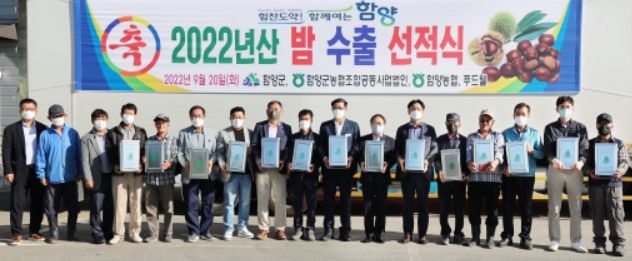 [한국기자연대] 함함양이 20일 함양농협산지유통센터에서 2022년산 함양 햇밤 24톤, 3만불을 중국으로 수출 선적했다고 밝혔다.