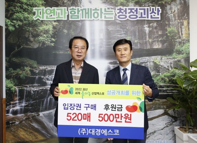 송인헌 괴산군수는 “㈜대경에스코의 후원과 입장권 구매는 엑스포 성공개최에 큰 도움이 될 것”이라고 감사를 표했다.
