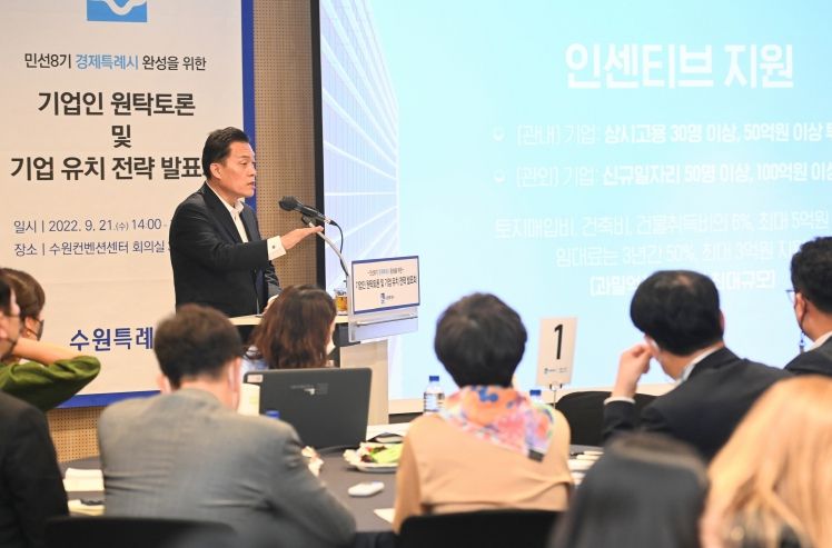 기업유치 전략 발표에 앞서 열린 ‘기업인 원탁토론’에는 관내 기업 경영인·종사자, 청년창업인, 유관기관 관계자 등 100여 명이 참석해 기업활동을 하며 어려웠던 점에 대한 의견을 나누고, ‘기업하기 좋은 수원시’를 만들기 위한 방안을 논의했다.