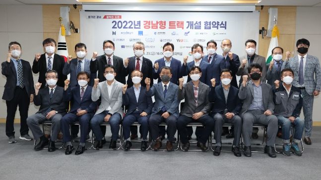 [한국기자연대] 경상남도는 23일 오후 도청 도정회의실에서 도내 18개 중소기업과 7개 대학, 5개 특성화고등학교가 참여해 ‘2022년 경남형 트랙 개설 협약’을 체결했다.