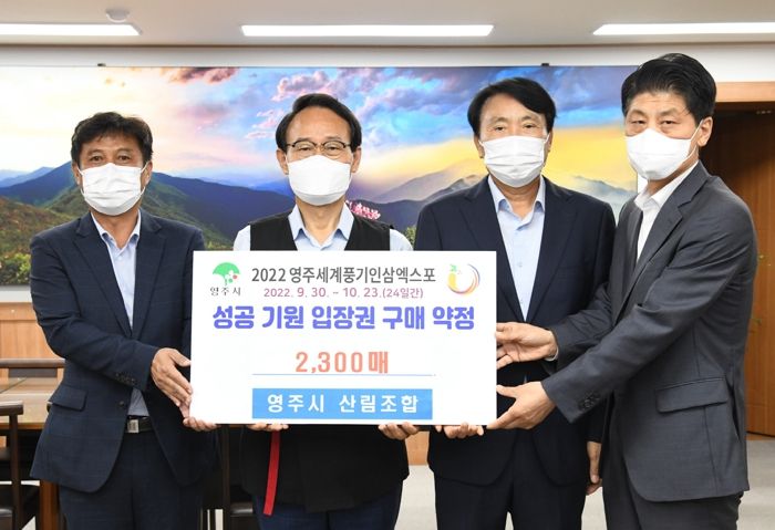 영주세계풍기인삼엑스포조직위원회는 2022영주세계풍기인삼엑스포 성공개최를 위해서 지난 23일 영주시 산림조합과 입장권 2300매 구매 약정을 체결했다.