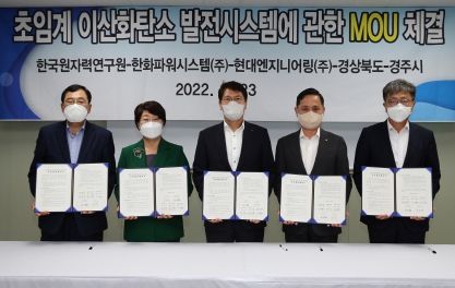 경주시, 경북도, 한국원자력연구원, 한화파워시스템, 현대엔지니어링 등 5개 기관은 지난 23일 ‘초임계 CO2 발전시스템 기술개발’을 위한 협약식을 개최했다.