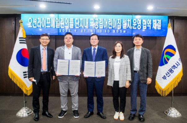 이날 협약식은 2019년 개정된 영유아보육법 상 신규 500세대 이상 공동주택 내 국공립어린이집 설치 의무화에 따른 것으로 2023년 6월 말 준공 예정인 오션라이프에일린의뜰아파트 1, 2단지 내 국공립 어린이집 신설을 위해 관리동 어린이집을 영도구에 무상으로 임대하는 내용으로 진행됐다.