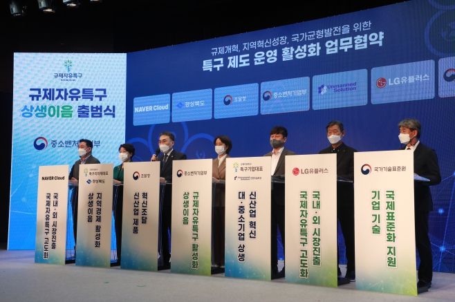 또한, 중기부는 특구에서 안전성이 입증된 제품·서비스의 시장 진출을 촉진하기 위해 조달청, 국가기술표준원, ㈜엘지유플러스, ㈜네이버클라우드 등과 ‘특구 상생이음 MOU’를 체결했다.
