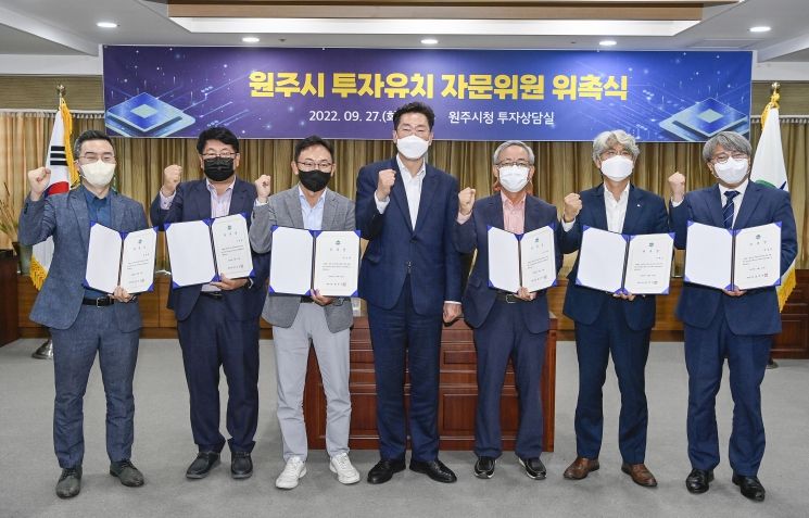 [한국기자연대] 원주시는 9월 27일 오후 3시 30분, 원주시청 7층 투자상담실에서'원주시 투자유치 자문위원 위촉식'을 개최하고 9명의 전문가를 자문위원으로 위촉했다.