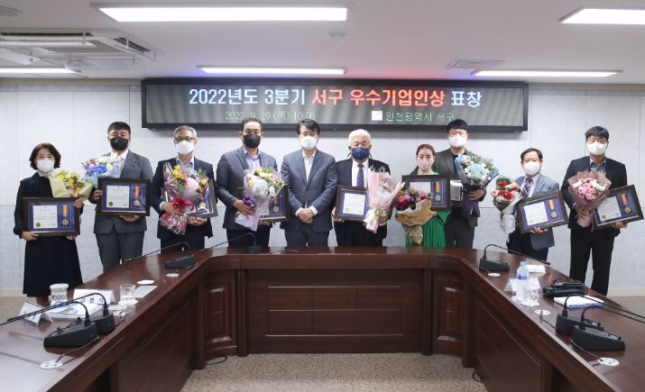 [한국기자연대] 인천광역시 서구가 29일 우수기업인상 표창 수여식을 열고 지역경제 활성화에 기여한 기업 대표 9명을 시상했다고 밝혔다.