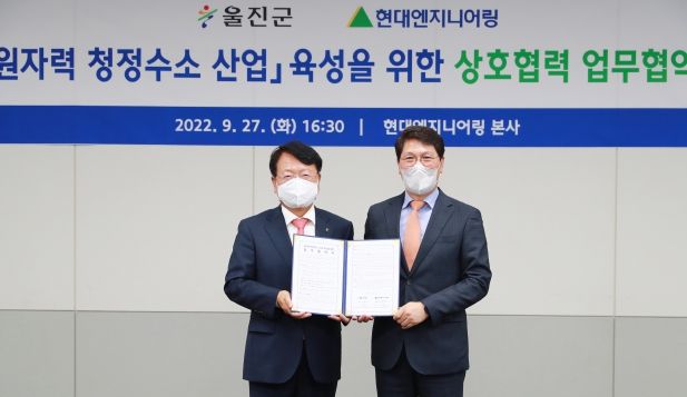 [한국기자연대] 울진군은 지난 9월 27일 효성중공업과 효성본사에서 현대엔지니어링과 현대엔지니어링본사에서‘원자력 청정수소 산업 육성을 위한 업무협약(MOU)’을 각각 체결했다고 밝혔다.