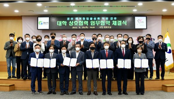 [한국기자연대] 경산시는 29일 시청 대회의실에서 윤두현 국회의원, 관내 6개 대학교(경일대, 대경대, 대구가톨릭대, 대구대, 대구한의대, 영남대)와 함께 벤처창업 활성화 역량 공유를 위한 대학 상호협력 업무협약(MOU)을 체결했다.