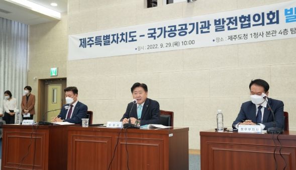 이어 “민선8기 제주도정의 주요공약인 제주형 기초자치단체 도입, 상장기업 20개 육성‧유치, 15분 도시, 그린수소 글로벌 허브 구축 모두 국가공공기관과 연계돼 있다”면서 “제주도와 국가공공기관이 협력해나가면 제주발전의 동력으로 작용해 큰 성과를 낼 수 있을 것”이라고 강조했다.