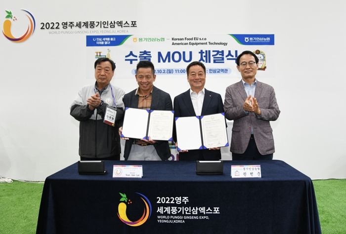 또, 풍기인삼농협과의 우호를 다져나갈 KOREAFOODS EU s. r. o.사(社)의 Tran Van Lai 대표와 AET사(社)의 VU GIA MUNG 대표는 “우수한 양질의 풍기인삼을 신뢰할 수 있는 풍기인삼농협과 거래할 수 있어 기쁘다. 앞으로도 지속적인 관계를 유지하고 인삼수입에 애쓰겠다”고 말했다.