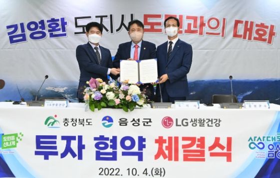 [한국기자연대] 충청북도와 음성군은 4일(15:30) 음성군청에서 군에 투자하는 ㈜LG생활건강과 대규모 투자협약을 체결했다.