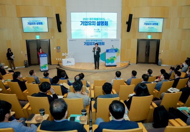제주도는 4일 서울 롯데월드타워 스카이31컨벤션센터에서 ‘2022 수도권 제주특별자치도 기업유치 설명회’를 열었다.