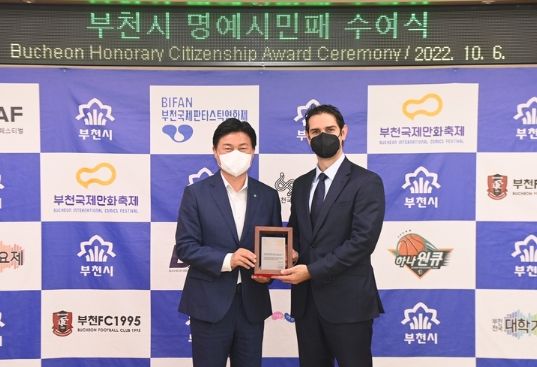 [한국기자연대] 부천시는 지난 6일 온세미(onsemi) 기업의 ‘하산 엘 코우리(Hassane El-Khoury)’ 회장에게 부천시 명예시민패를 수여했다고 밝혔다.