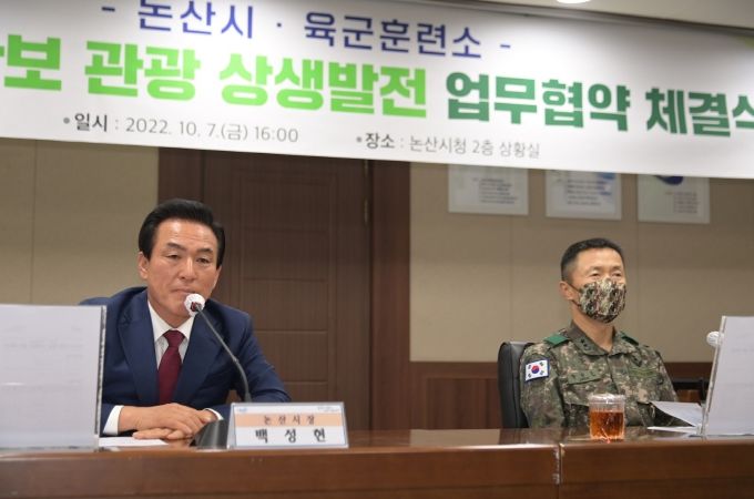 백성현 논산시장은 “오늘의 이 자리는 지역의 관광 활성화를 도모하는 것뿐만 아니라 국군과 우리 논산이 하나 되어 충남 남부권의 미래 살 거리를 만들고자 합심했다는 것에 큰 의의가 있다”며 “논산시와 육군훈련소가 새로운 역사를 쓴 날”이라고 말했다.