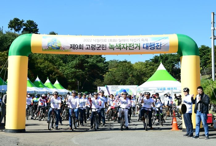 [한국기자연대] 올해로 아홉번째 개최되는'제9회 고령군민 녹색자전거 대행진' 행사가 고령군 대가야역사테마관광지 주차장 특설무대에서 코로나19로 인해 3년 만에 10월 8일에 개최됐다.