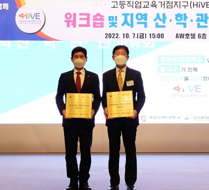 '고등직업교육거점지구(HiVE)사업'은 기초자치단체와 지역 전문대가 연계·협력해 지역 내 특화 분야를 선정하고, 관련 지역인재를 육성하는 거점 역할을 할 수 있도록 교육부가 지원하는 공모사업이다