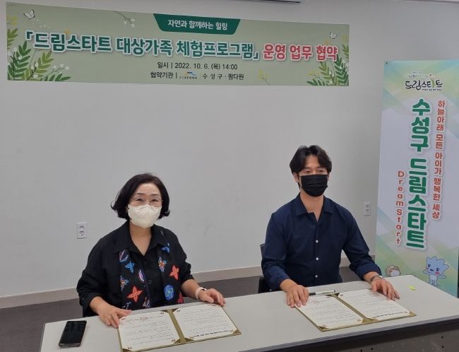 [한국기자연대] 대구 수성구는 지난 6일 수성구청 별관에서 다육이 체험 농장 팜다원과 ‘드림스타트 체험 프로그램 지원’ 업무 협약을 체결했다.